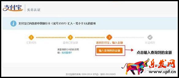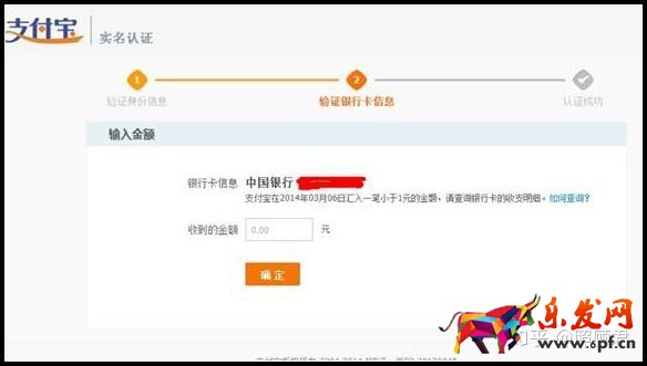 第七步:點擊"繼續認證"后,進入支付寶銀行卡打款信息頁面,請您將銀行卡中查詢到的支付寶打款金額準確輸入以下圖示中的信息項,并按以下頁面提示操作: