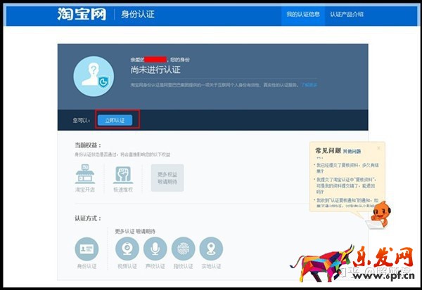 第二步:點擊【立即認證】后,您會進入【淘寶網身份認證】的頁面,請點擊該頁面中的【立即認證】,如圖所示: