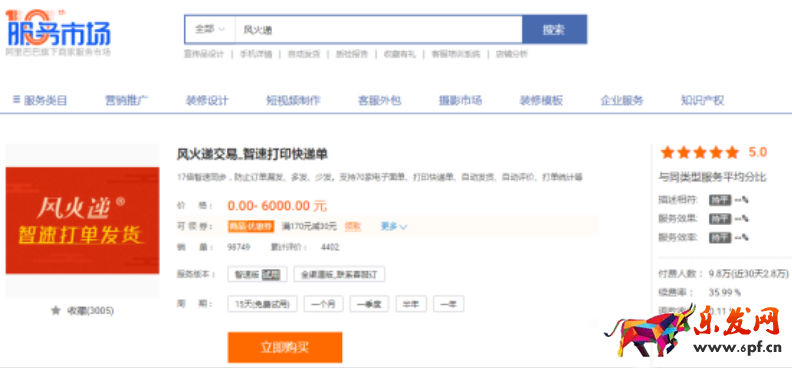 1、前往服務(wù)市場訂購風(fēng)火遞,搜索“風(fēng)火遞”,選擇套餐訂購即可