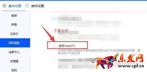 如圖所示。自己進入“基礎設置”界面后,在“網頁瀏覽”中,不要勾選(啟用WebRTC),這樣就可以了。