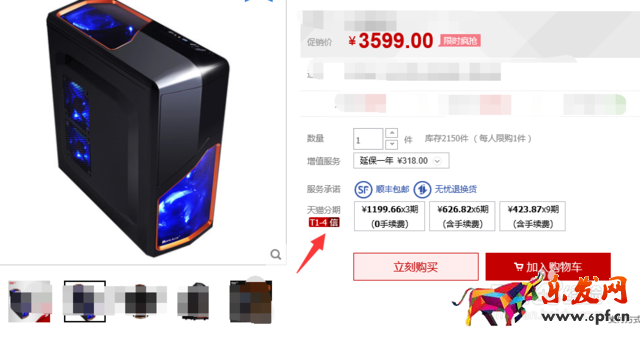 在分期選項(xiàng)后面還有具體的分期選擇,這里我們選擇自己喜歡的分期模式點(diǎn)擊購買。