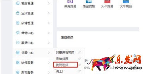 2、在貨源中心的下拉菜單當(dāng)中,我們找到批發(fā)進(jìn)貨的選項(xiàng),進(jìn)入到淘貨源商城頁(yè)面當(dāng)中,具體位置如下圖。