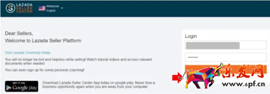 1.進入Lazada的賣家中心:https://sellercenter.lazada.com.my/,然后看到右邊有一個賣家登錄框;點擊下方的“成為賣家即可注冊。