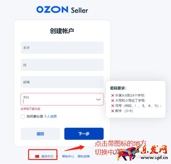 OZON注冊起始地址:https://seller.ozon.ru/app/signup