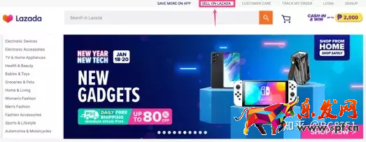 1.打開Lazada首頁,點擊網站頂部“Sell on Lazada”