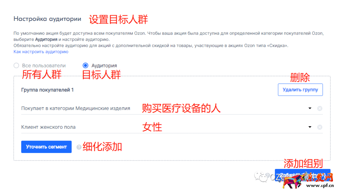例如,帥編這里選的是“購買醫療設備的人”,又想再細化一下人群,接著添加了一個“女性”,那么我們這次優惠的受眾目標就是購買醫療設備的女性,才可以享受我們的優惠活動。