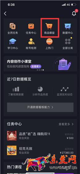 1.創作者服務中心:進入之后點擊“商品櫥窗”。