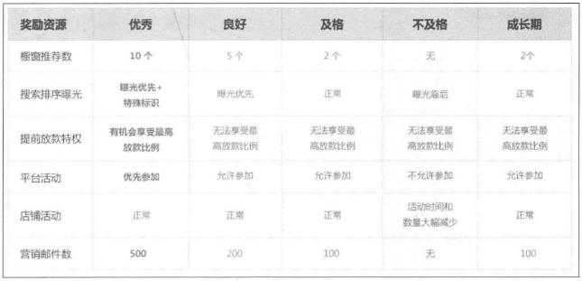 不同等級的賣家將在櫥窗數(shù)量、搜索排序曝光、提前放款、平臺活動、店鋪活動等方面享有不同的資源。